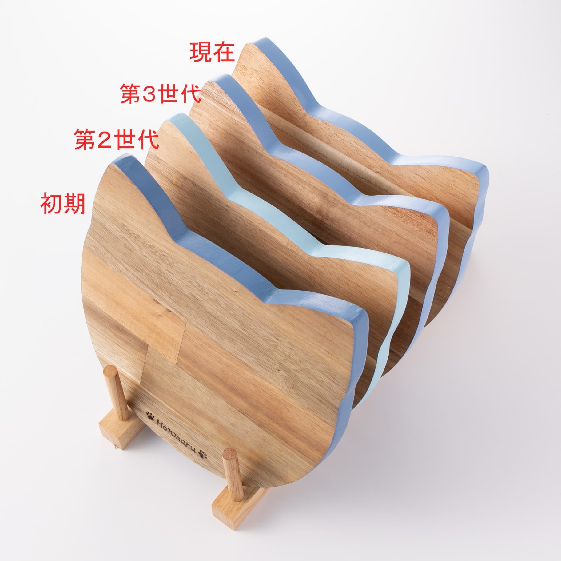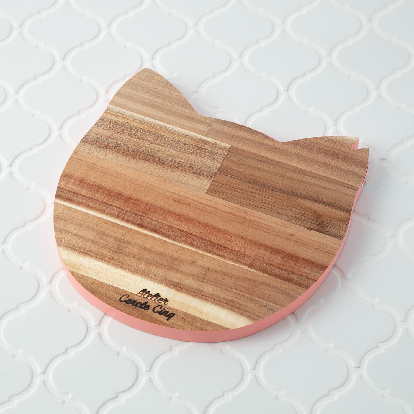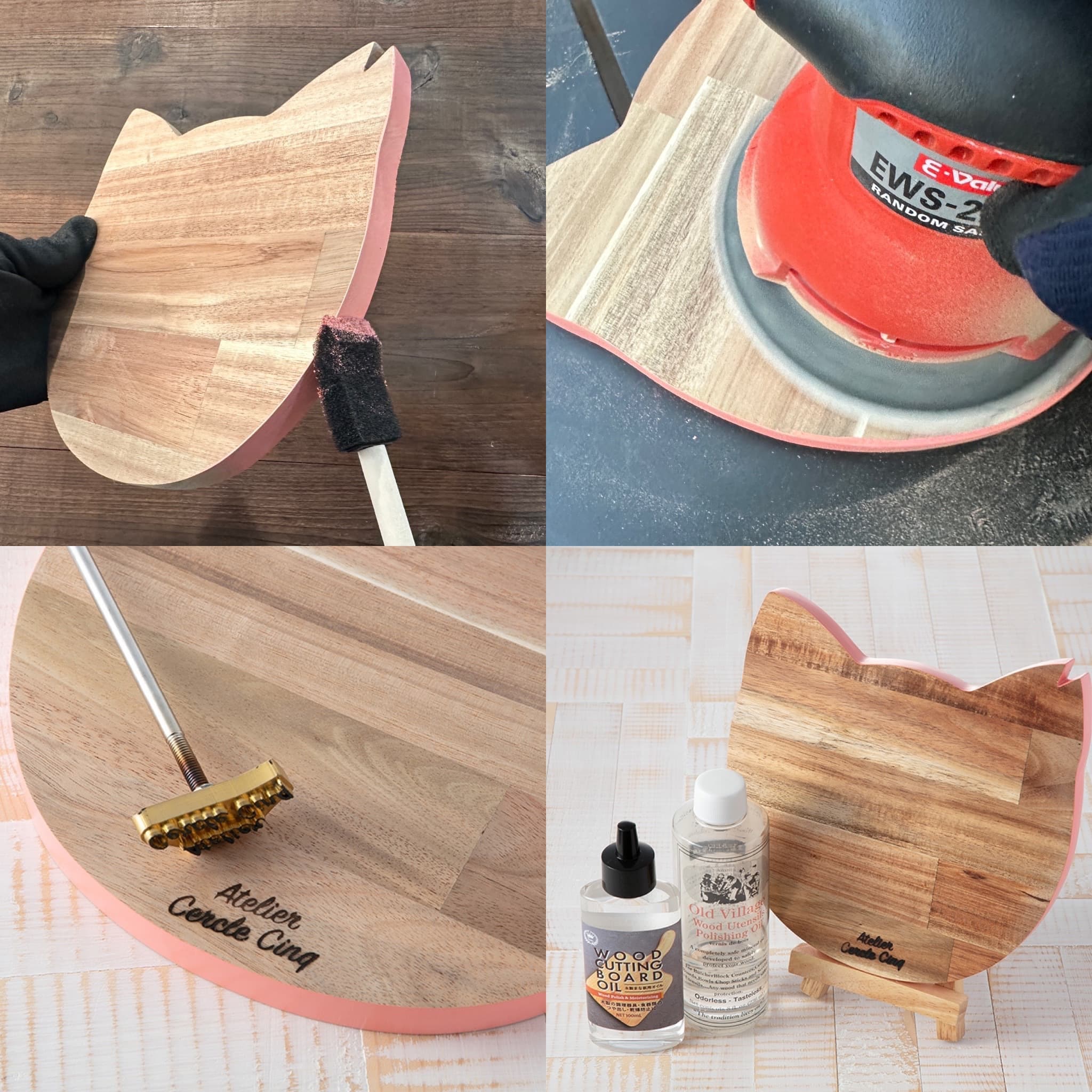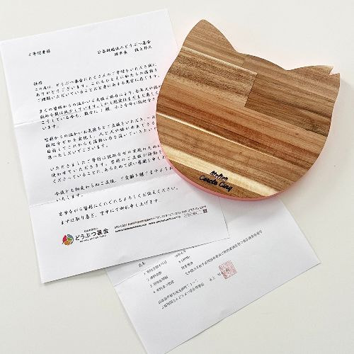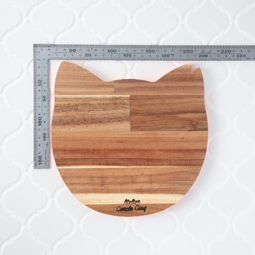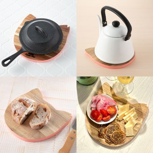 さくら猫をイメージして作った鍋敷です。(Parisで見かけた猫型の木製プレートをアレンジしています)
