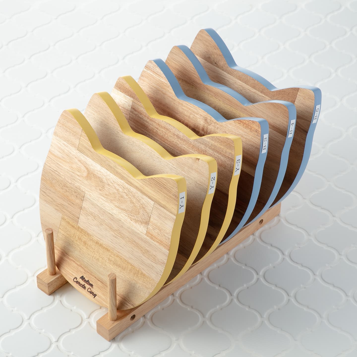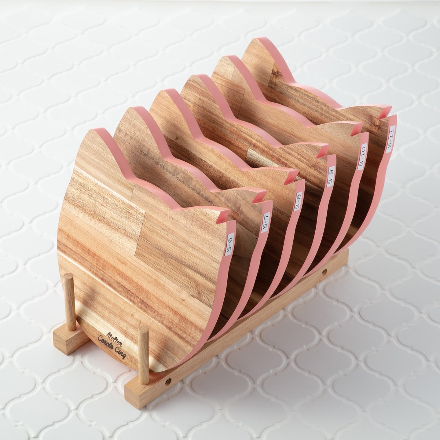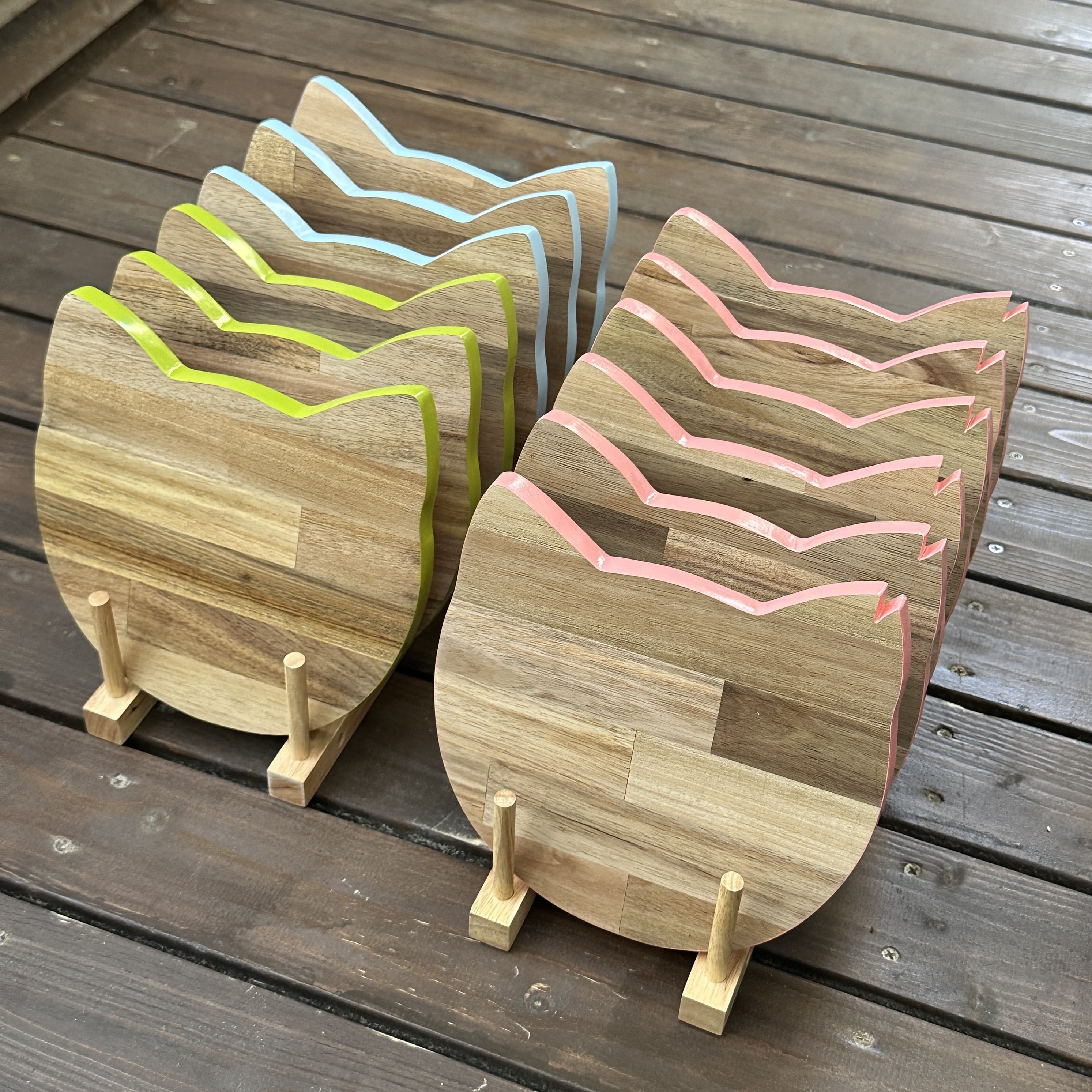 さくら猫をイメージして作った鍋敷です。(Parisで見かけた猫型の木製プレートをアレンジしています)